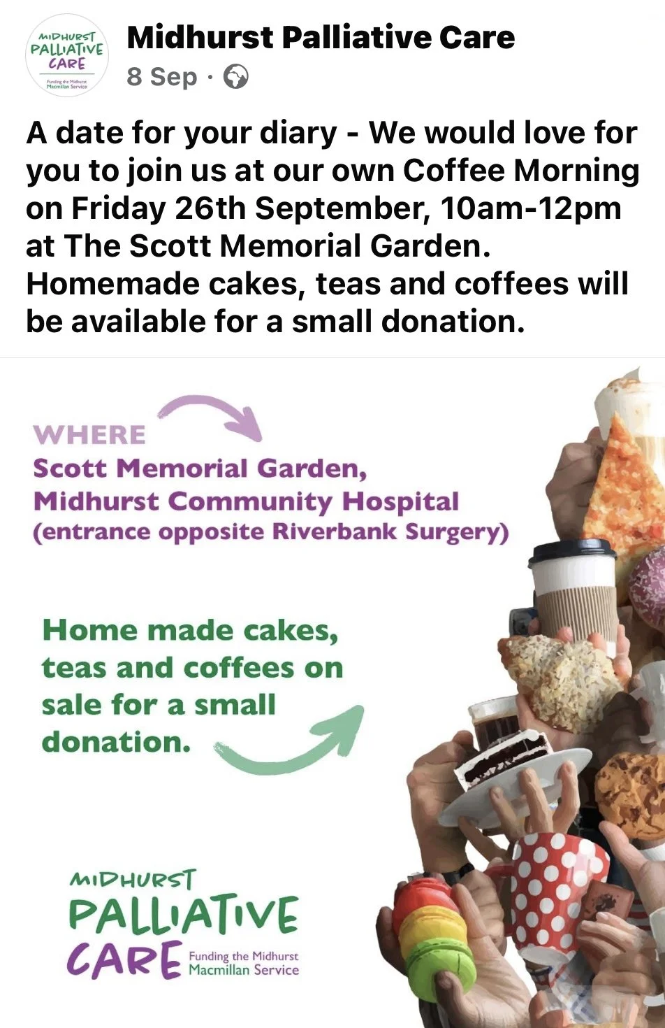 Midhurst Palliative Care CIO (Charitable Incorporated Organisation) raises funds to enable the Midhurst Macmillan Service to provide its community-based, consultant-led specialist palliative care service to patients across Hampshire, Surrey and West Sussex.