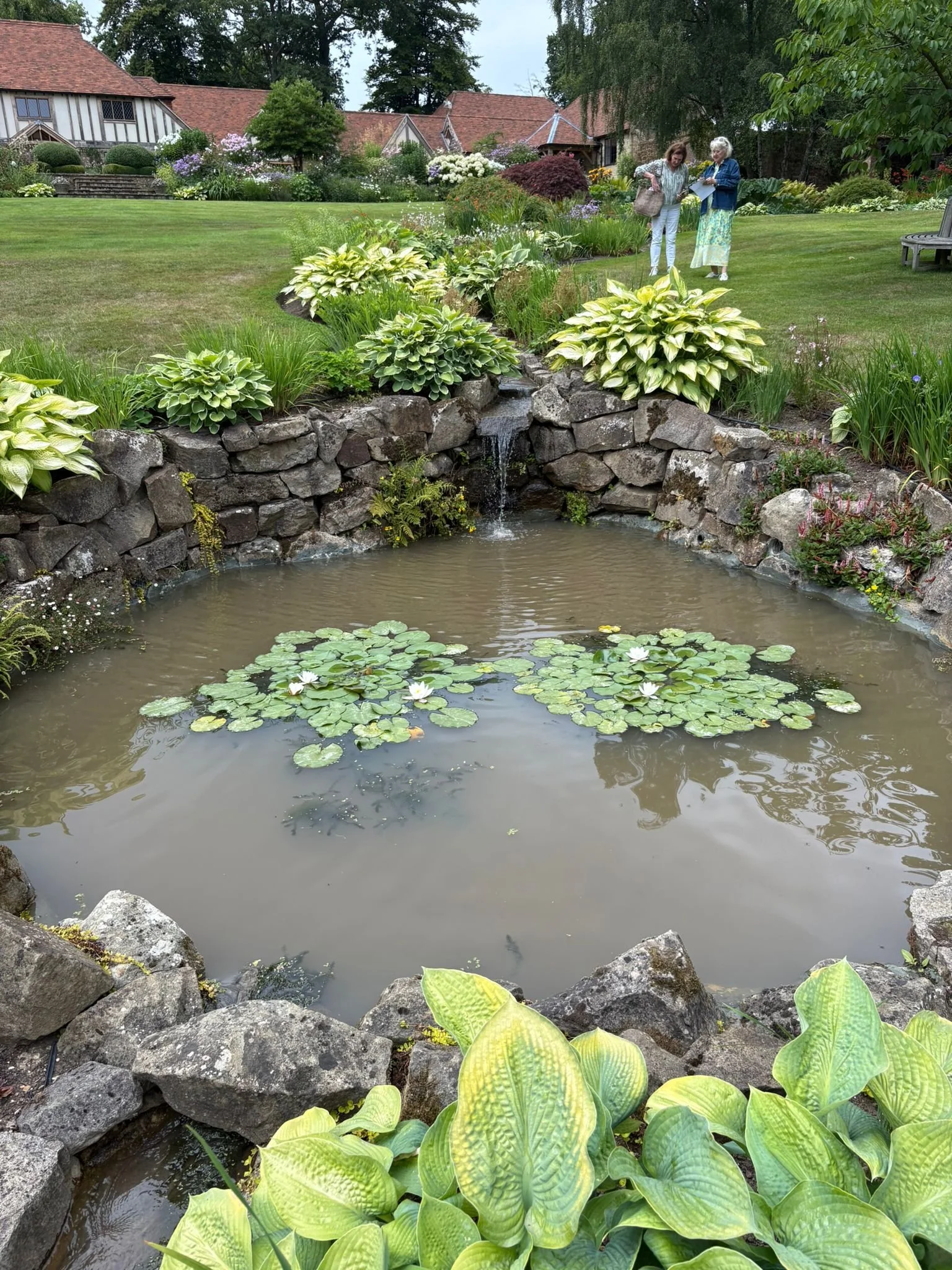 Our members’ only garden visit this year was held at Paul Morrow’s beautiful garden in Fernhurst. With sandwiches and cake provided by Comestibles we enjoyed a wonderful afternoon wandering his beautifully designed gardens, admiring the ‘room’ spaces and the winding stream leading to a picturesque lake. Planting designed to be at its best in the summer was admired by all.